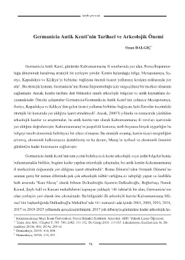 yanmaktadır. Önceki çalışmalar Germanicia/Germanikeia Antik Kenti’nin yalnızca Mezopotamya,