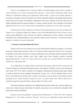 analiz etmek yararlı olacaktır. Bu doğrultuda makalemizin temel amacı, Mantıkçı Pozitivistler tarafından öne