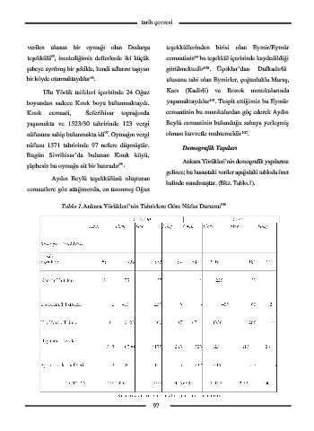 Ankara Yörükleri’nde “Oğuz Boy Batı Anadolu’da yaşayan bir diğer mühim yörük Tablo 1.Ankara Yörükleri’nin Tahrirlere Göre Nüfus Durumu 103