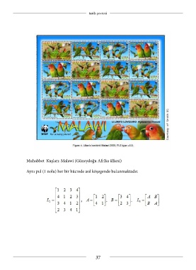 tarih çevresi Muhabbet Kuşları: Malawi (Güneydoğu Afrika ülkesi) Aynı pul (1 nolu) her bir hücrede asıl köşegende bulunmaktadır. 37