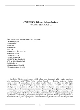 Önce Atatürkçülük ilkelerini hatırlatmak istiyorum: