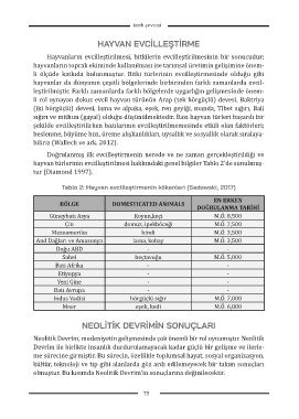 hayvan türlerinin evcilleştirilmesi hakkındaki genel bilgiler Tablo 2’de sunulmuş-